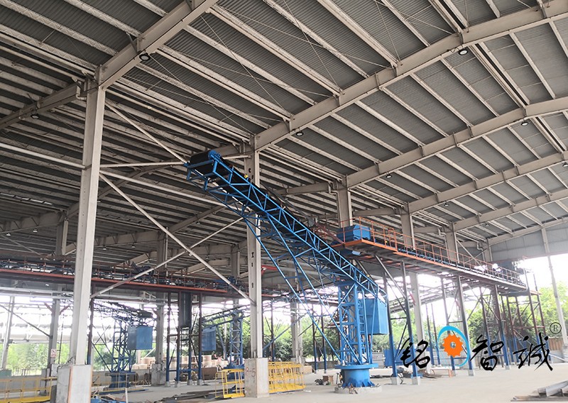 旋轉(zhuǎn)式皮帶輸送機(jī),為散碎物料倉貯輸送設(shè)備,是在安裝有行走輪的支架上部的底盤上安裝一轉(zhuǎn)盤,轉(zhuǎn)盤可相對底盤作旋轉(zhuǎn)運(yùn)動(dòng),皮帶輸送機(jī)的進(jìn)料端座在轉(zhuǎn)盤頂部的托盤上,出料端為懸臂式,配重箱在托盤上用以上與懸臂配重,倉貯時(shí),物料通過料斗由輸送帶送至遠(yuǎn)端,推動(dòng)懸臂即可改變堆積位置,在庫房內(nèi)實(shí)現(xiàn)多點(diǎn)堆積而勿需停機(jī)和移動(dòng)機(jī)體,連續(xù)作業(yè)省時(shí)省力,操作方便,尤其適用于糧食的倉貯輸送。